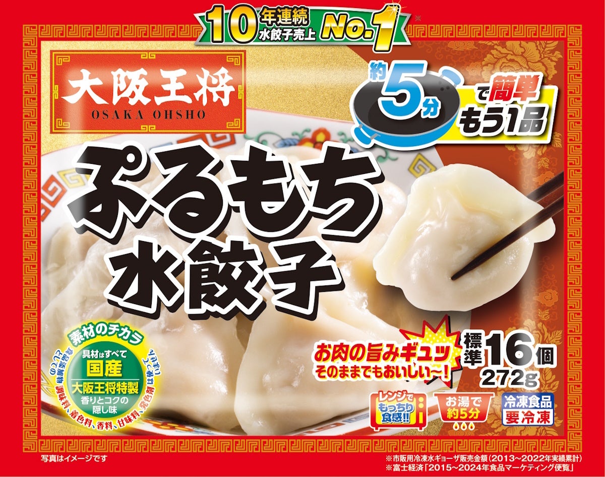 水餃子カテゴリーにおける9年連続売上1位を牽引している『ぷるもち水餃子』や『極みの肉汁 濃厚爆弾餃子』をはじめ、2023年秋冬に発売した『極みの肉汁 濃厚水餃子』や『暴走背脂ニンニクぶた餃』など、水餃子は大阪王将冷凍餃子の中で人気の商品です。設備復旧中は関東第二工場の水餃子ラインの生産を増強し、対応をしておりましたが、このたびの関東第一工場での水餃子ラインの稼働再開により、従来の体制に。出荷量が右肩上がりとなっている水餃子の更なる需要に応えてまいります。