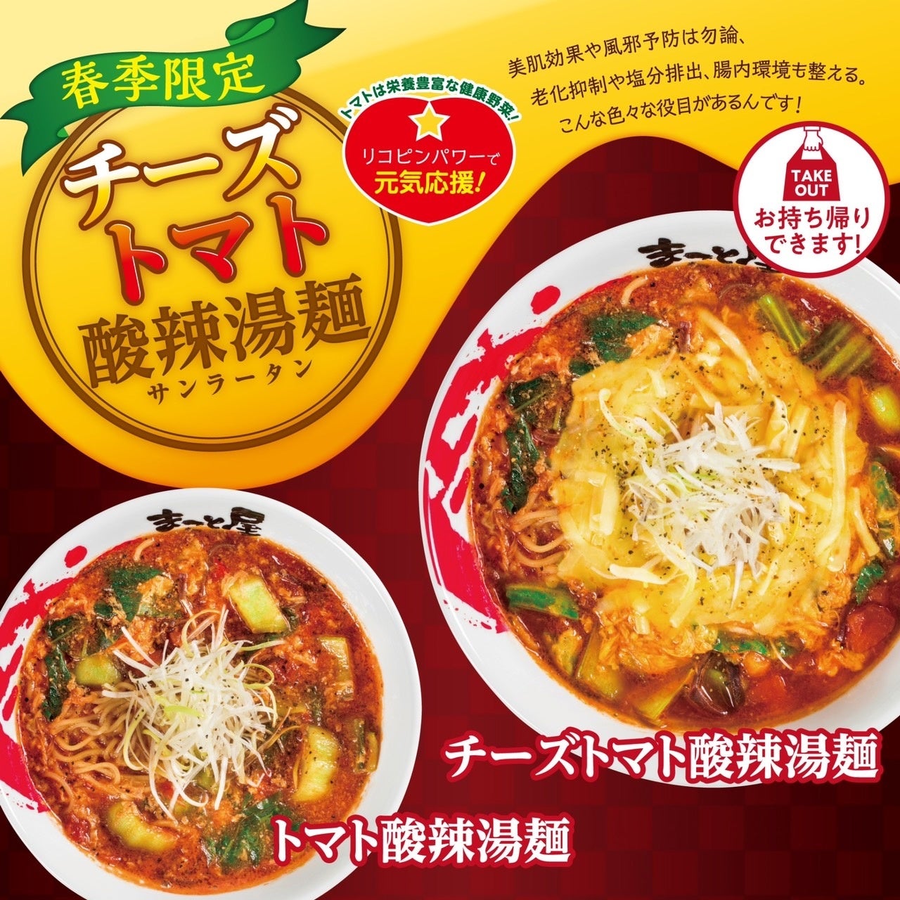 毎年ご好評いただいております、ラーメンまこと屋自慢の期間限定商品『トマト酸辣湯麺』と『チーズトマト酸辣湯麺』の販売を、2024年3月1日(金)より販売開始致します。