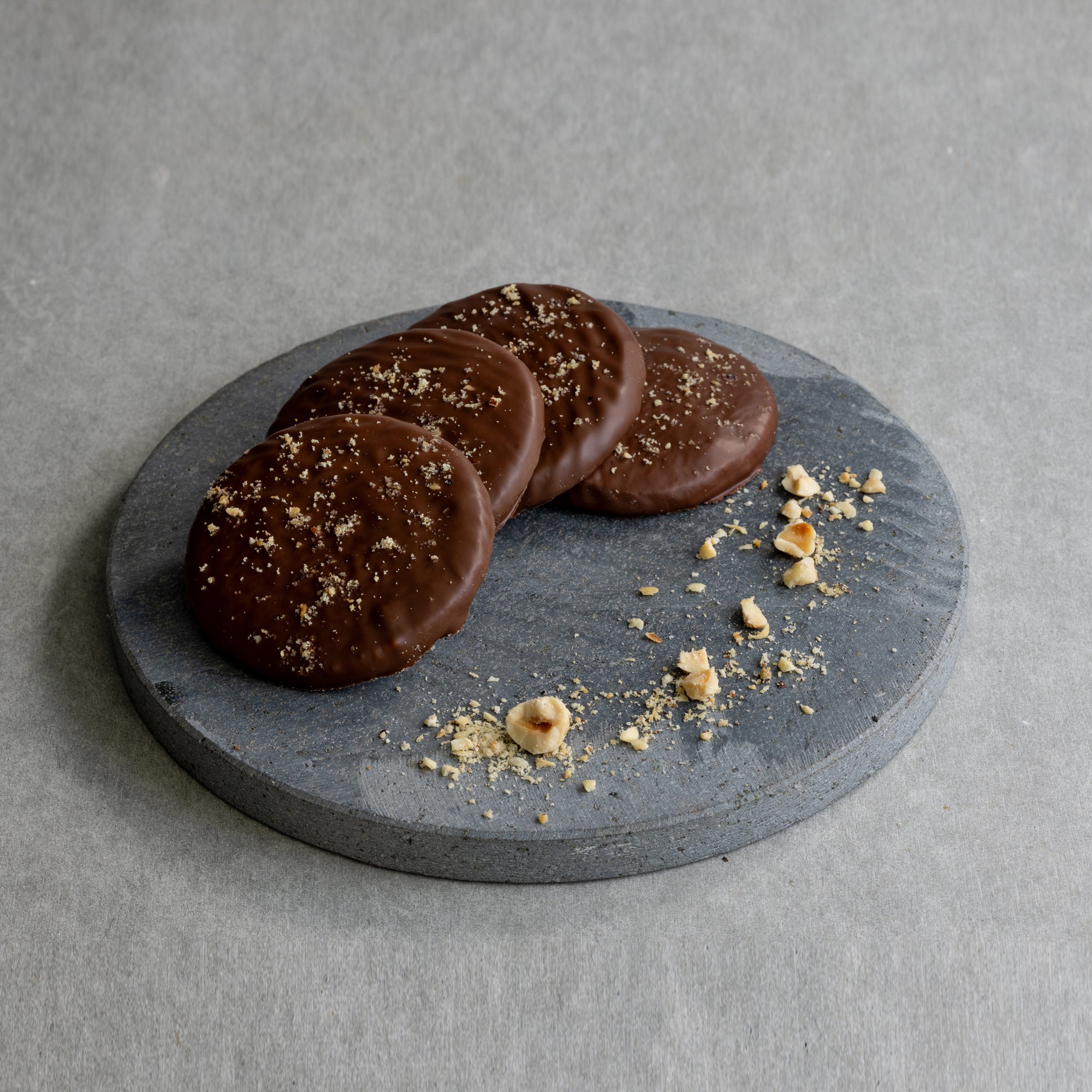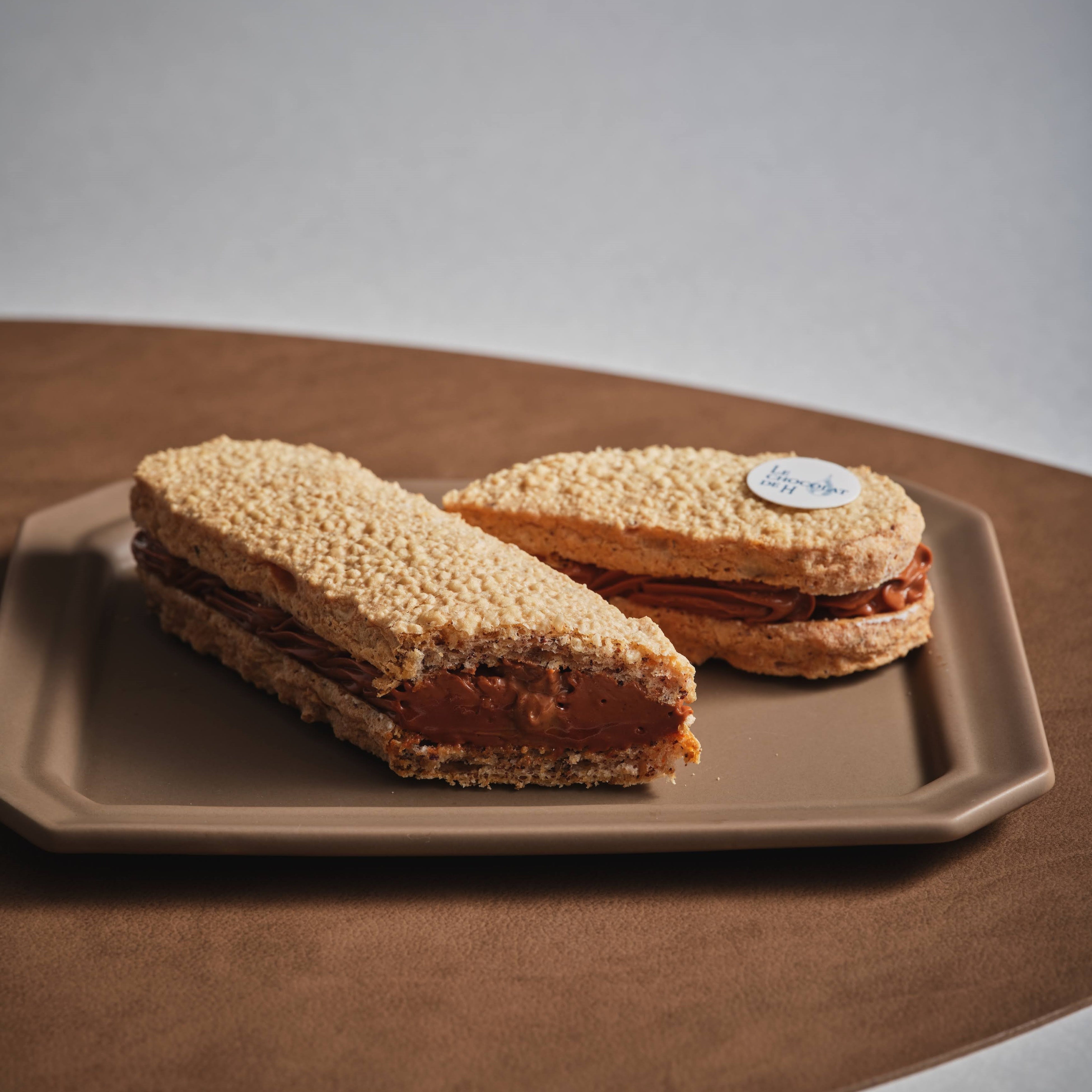 ヘーゼルナッツのサブレをショコラ オ レでコーティングしたサブレ。