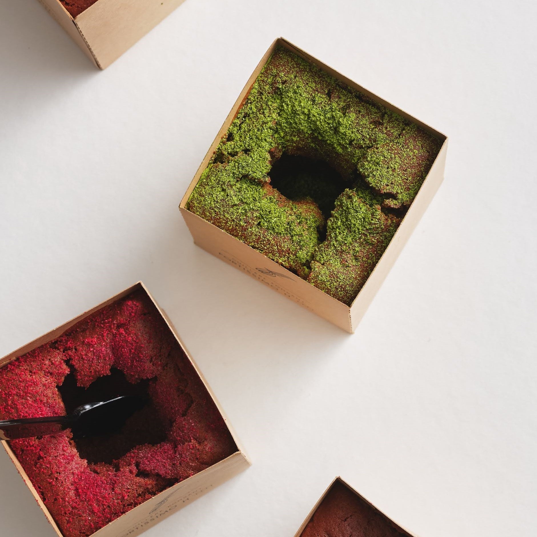 ガナッシュが中からとろり。あまおうの爽やかな甘さと西尾抹茶のほろ苦さが際立つフォンダンショコラ。