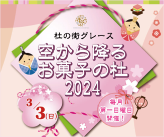 今後も、毎月第1日曜日を「空から降るお菓子の杜」と題し、お菓子まきのイベントを定期開催します。