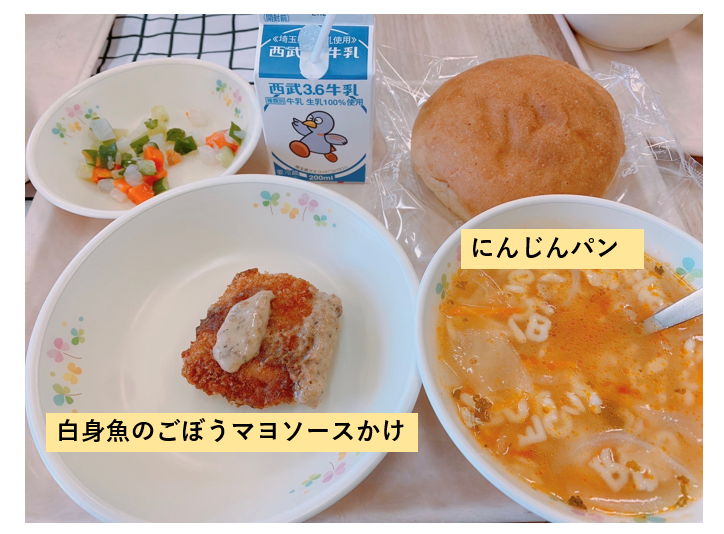 小学校では、規格外品のにんじんから作られた「ニンジンぐるりこ」を使用した「にんじんパン」と、食品工場で発生したごぼうの端材から作られた「ゴボウぐるりこ」をソースにした「白身魚のごぼうマヨソースかけ」が提供されました。子ども達からは、「にんじんが苦手でも食べられた」「ごぼうの味がしっかり感じられる」「ほかのぐるりこも食べたい」といった感想がありました。