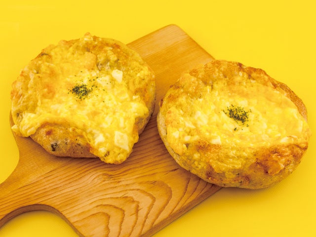 北海道産小麦を使用したもっちりとした生地に10種類の穀物を練り込み、チーズソースとたっぷりのタマゴサラダをトッピングし焼き上げました。