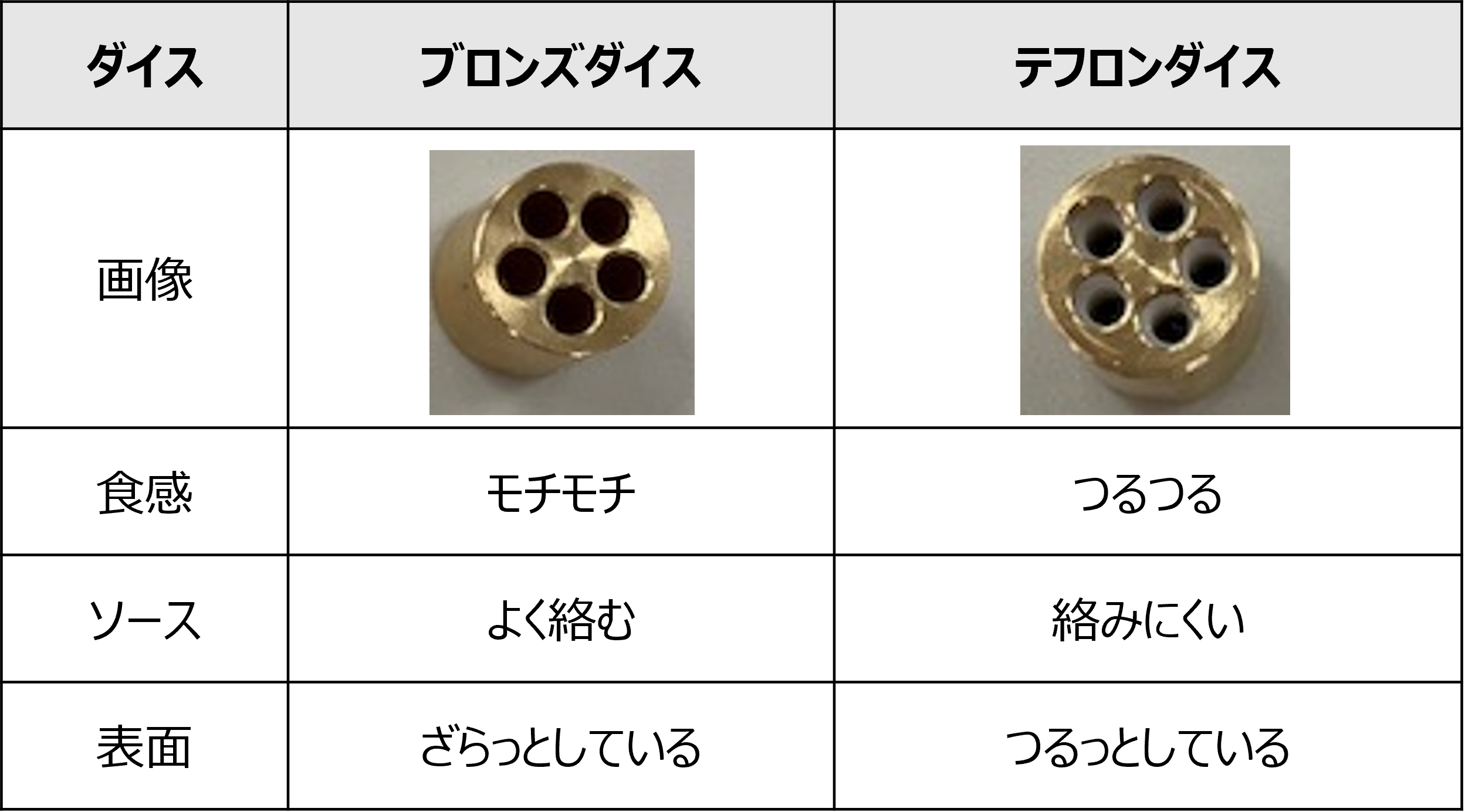 従来の「テフロンダイス製法」からイタリア伝統の「ブロンズダイス製法」へ製法を切り替え、