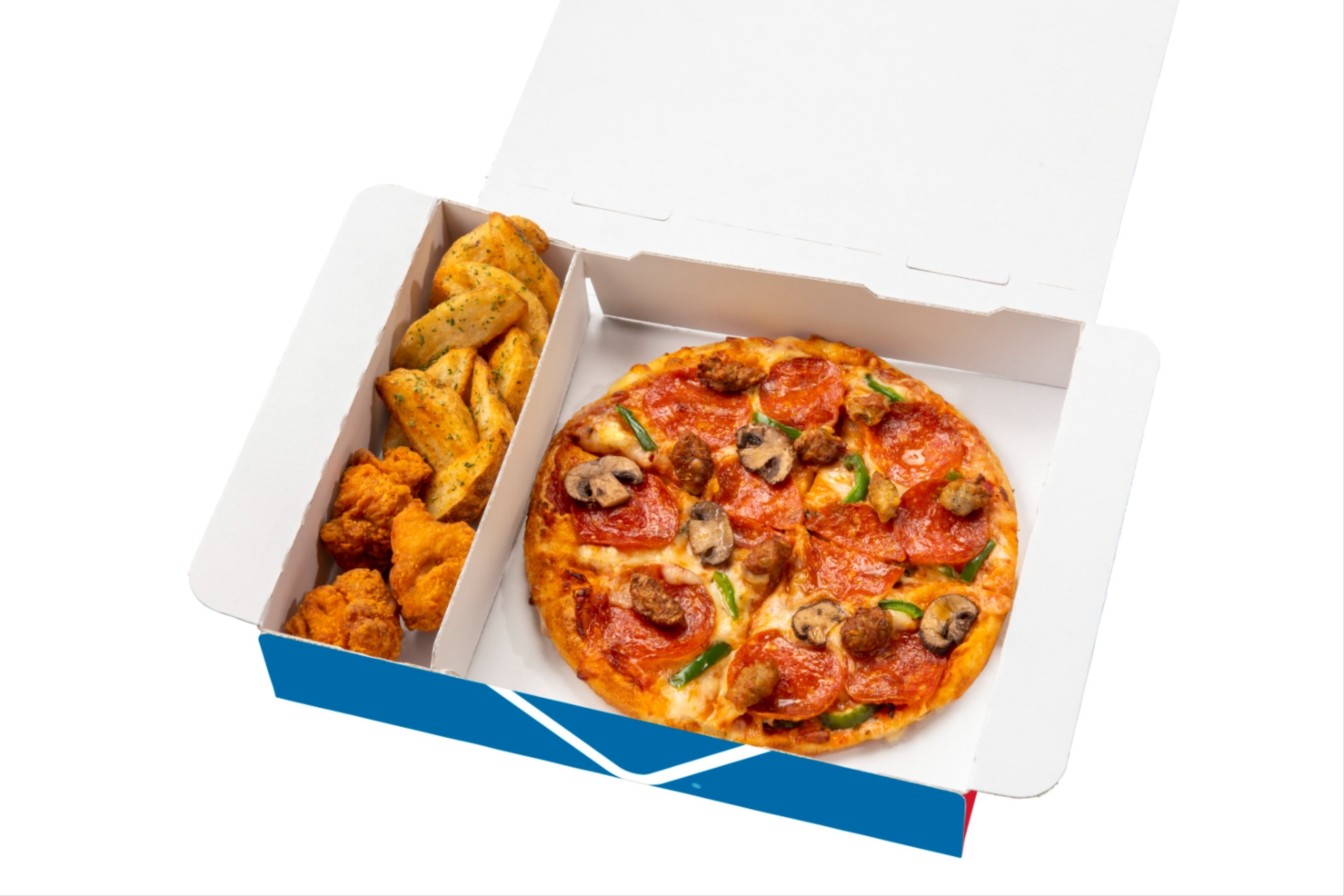 「マイドミノ®」は、おひとり様サイズのお好きなメイン1品+サイド2品をワンボックスにした、ドミノが誇る大人気のおひとり様向け商品です。豊富なメニューの中から自分だけの大満足なセットが作れます。