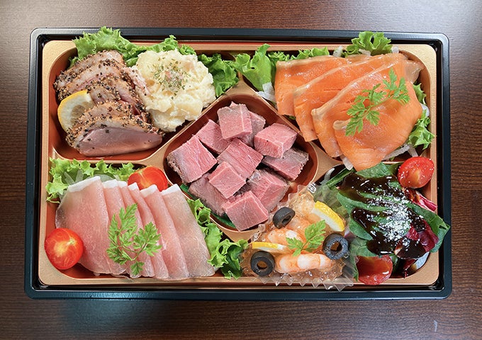 ↑〈明石魚の棚 すし左衛門〉海鮮花ちらし寿司 1折 税込1,280円