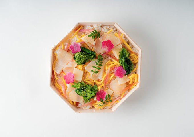 鯛・菜の花・たけのこを使った春の訪れを感じるちらし寿司です。