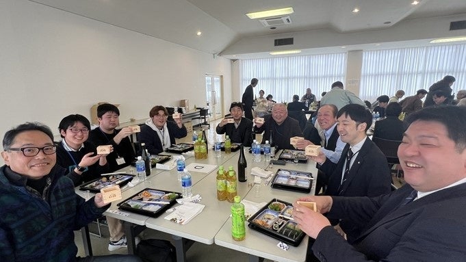 日本酒の披露が行われ、大学生と関係者がお酒を飲みながら懇親を深めました。