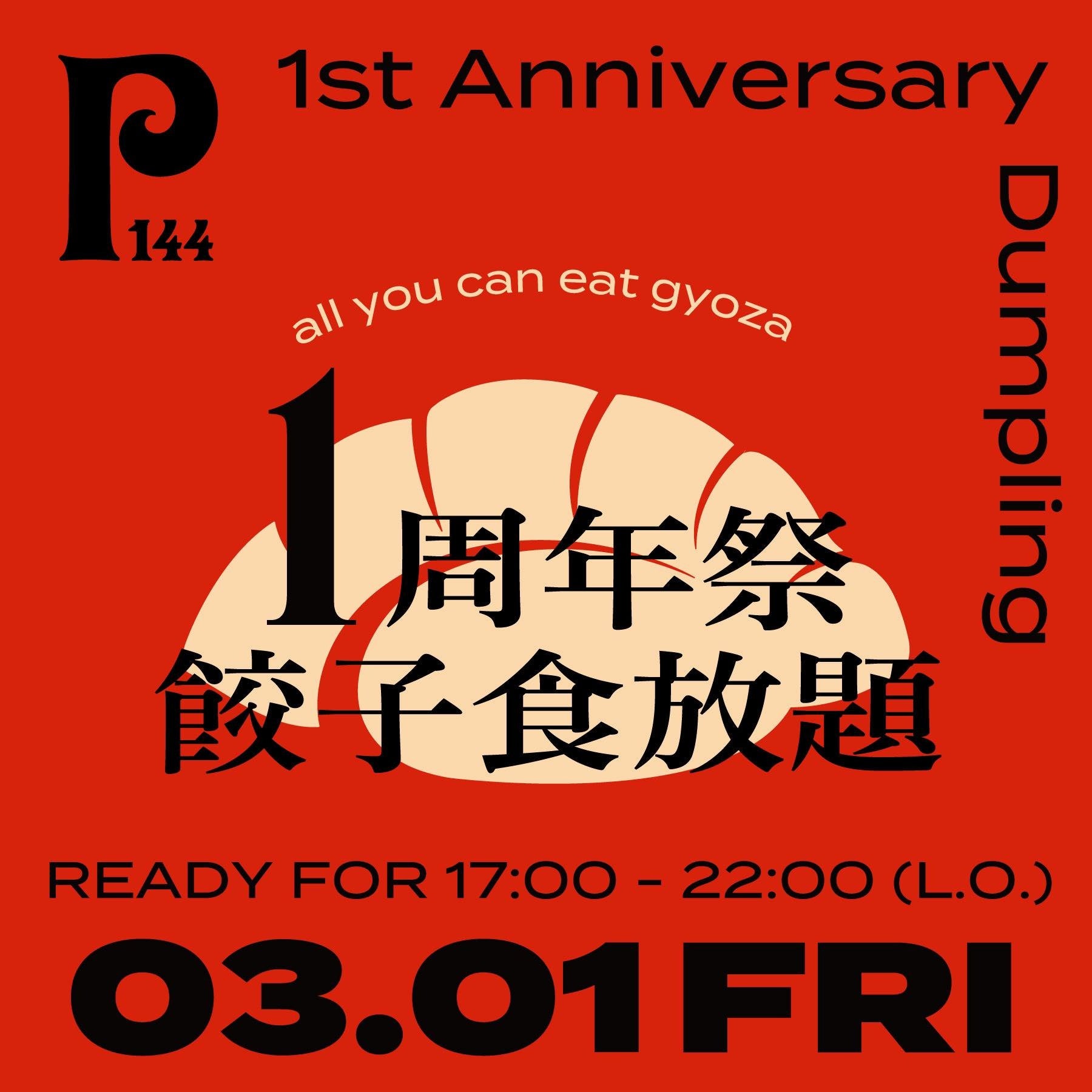 内 容:P-144で最も人気のメニューの1つ自家製の水餃子が、通常1皿660円のところ、1,100円(1名様分)で食べ放題で楽しめる(※)ほか、先着144名にクラフトサケ「花風」(1杯)を無料でご提供します。