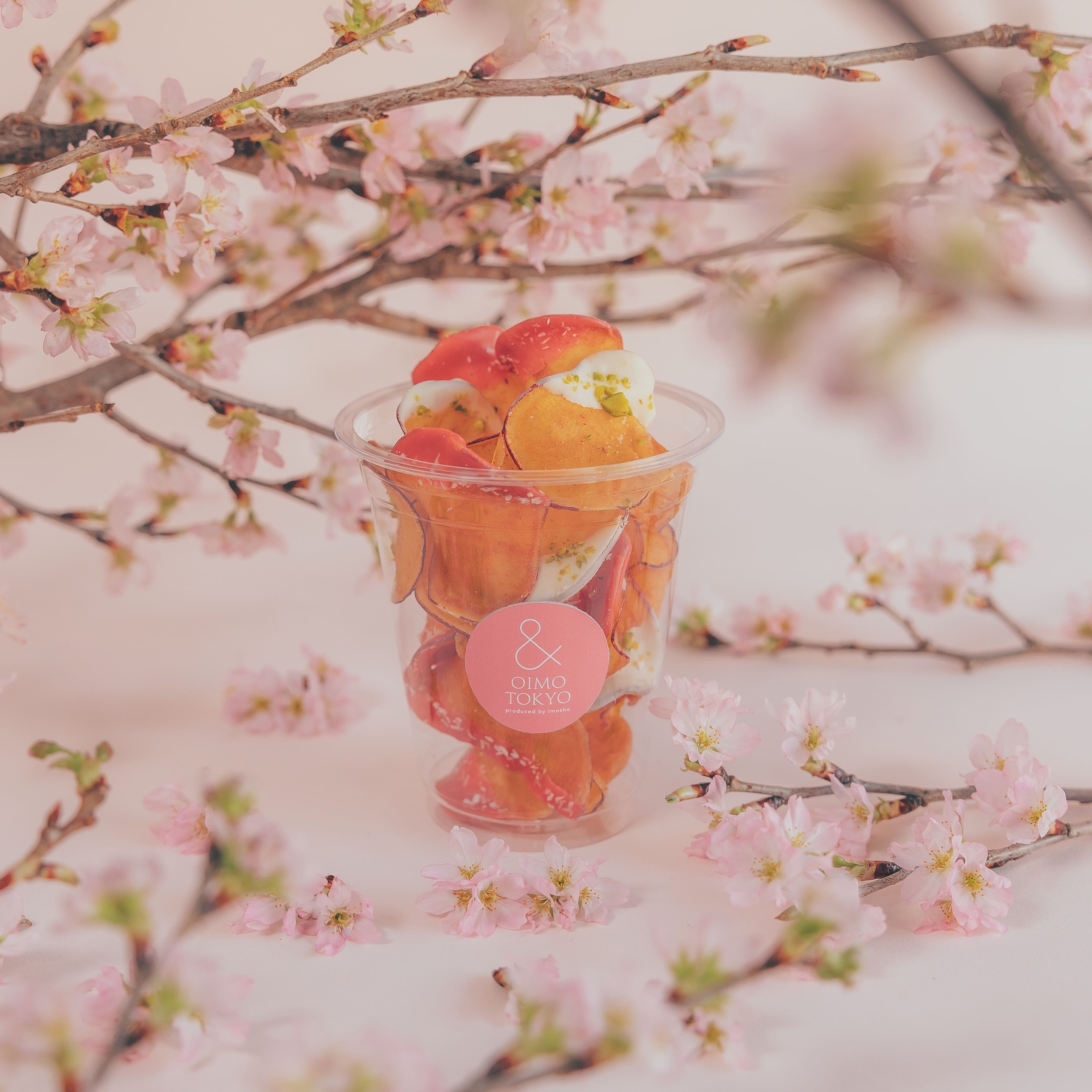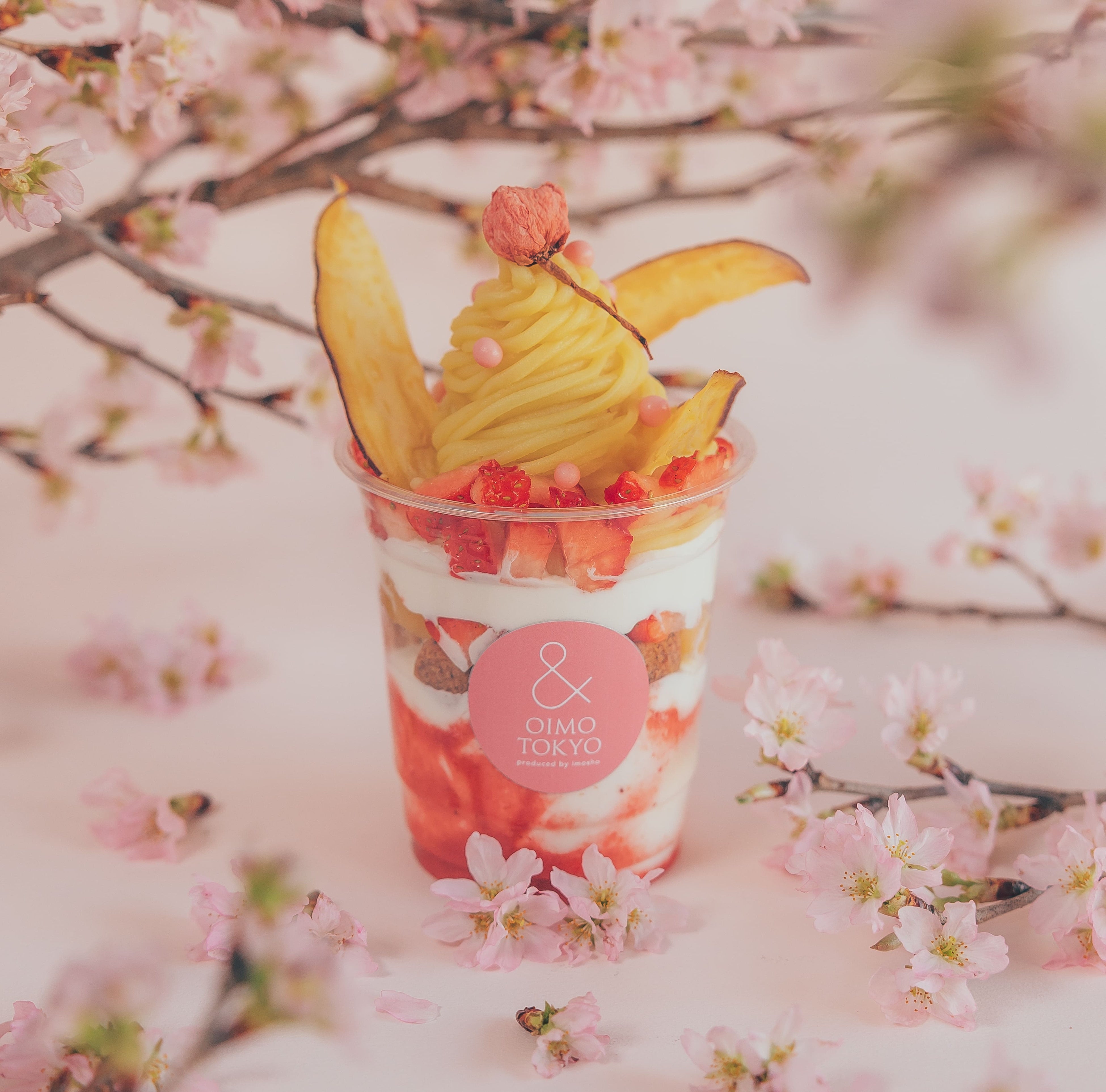 全長約4kmにわたり約800本のソメイヨシノが咲き誇る全国一位の人気お花見スポット、目黒川沿いの桜並木。昼は春風に吹かれる中で壮大な光景を楽しみ、夜には夜桜が美しくライトアップされピンクのぼんぼりが点灯することで目の前には幻想的な光景が広がる、春のうららの目黒川。この度、全国各地から大勢の花見客で賑わうお花見の名所のすぐ近くにある、熟成蜜芋スイーツ専門店《& OIMO TOKYO》の旗艦店《& OIMO TOKYO CAFE 中目黒》では、3月1日(金)から、お花見シーズン限定蜜芋の桜スイーツを販売いたします。厳選したさつまいもやこだわり抜いた食材を使用し、味はもちろん、見た目も可愛らしいさつまいもスイーツで目黒川の桜シーズンを彩ります。