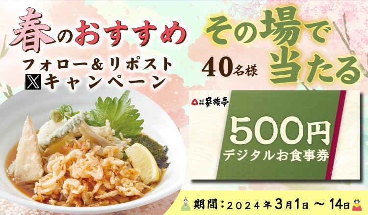 また、桜海老フェアの開催を記念して、「家族亭デジタルお食事券 500円分」が抽選で40名様に当たる家族亭公式Xフォロー&リポストキャンペーンも開催いたします。