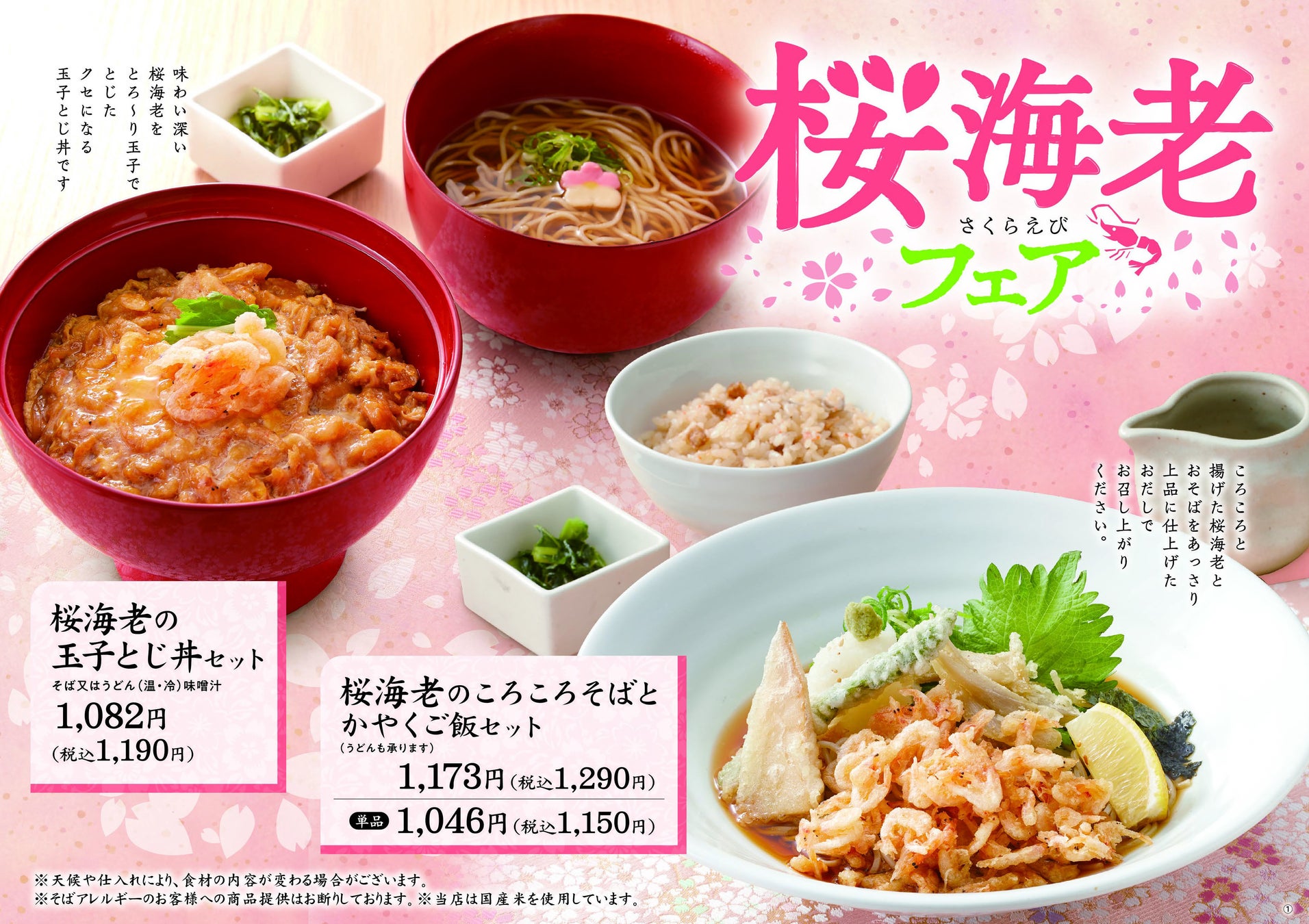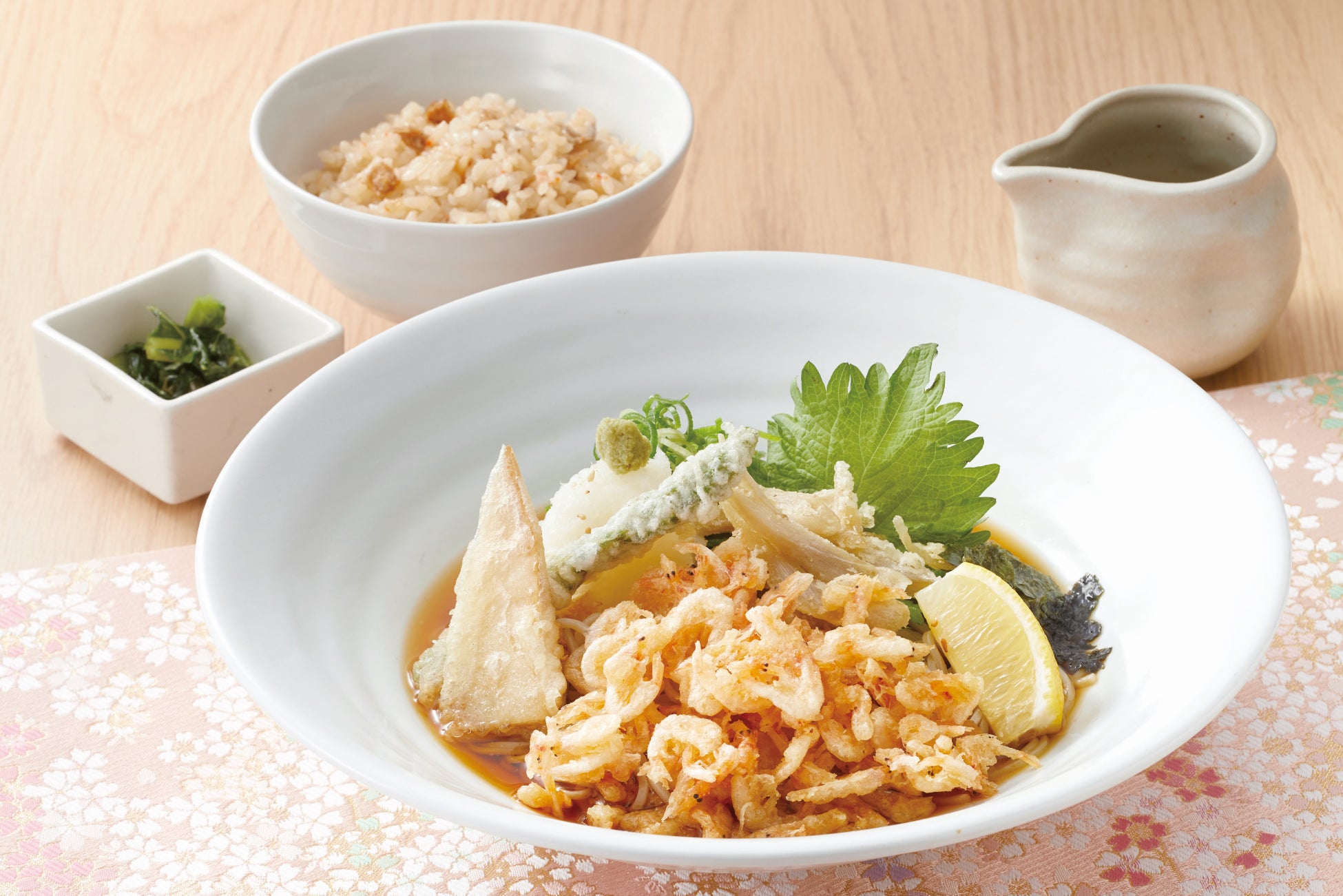 ころころと揚げた桜海老と家族亭自慢のおそばをあっさりと上品に仕上げたおだしでお召し上がりください。
