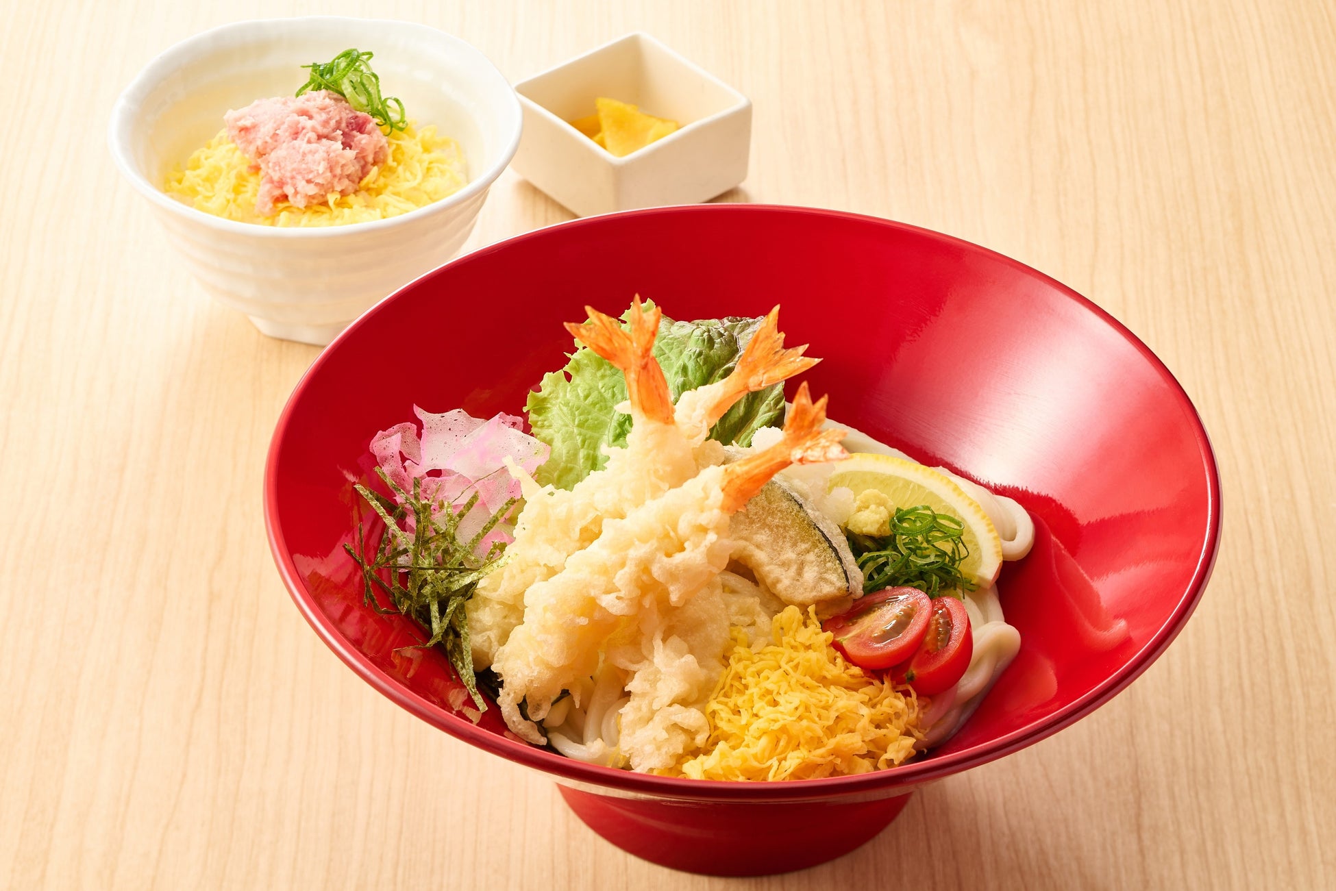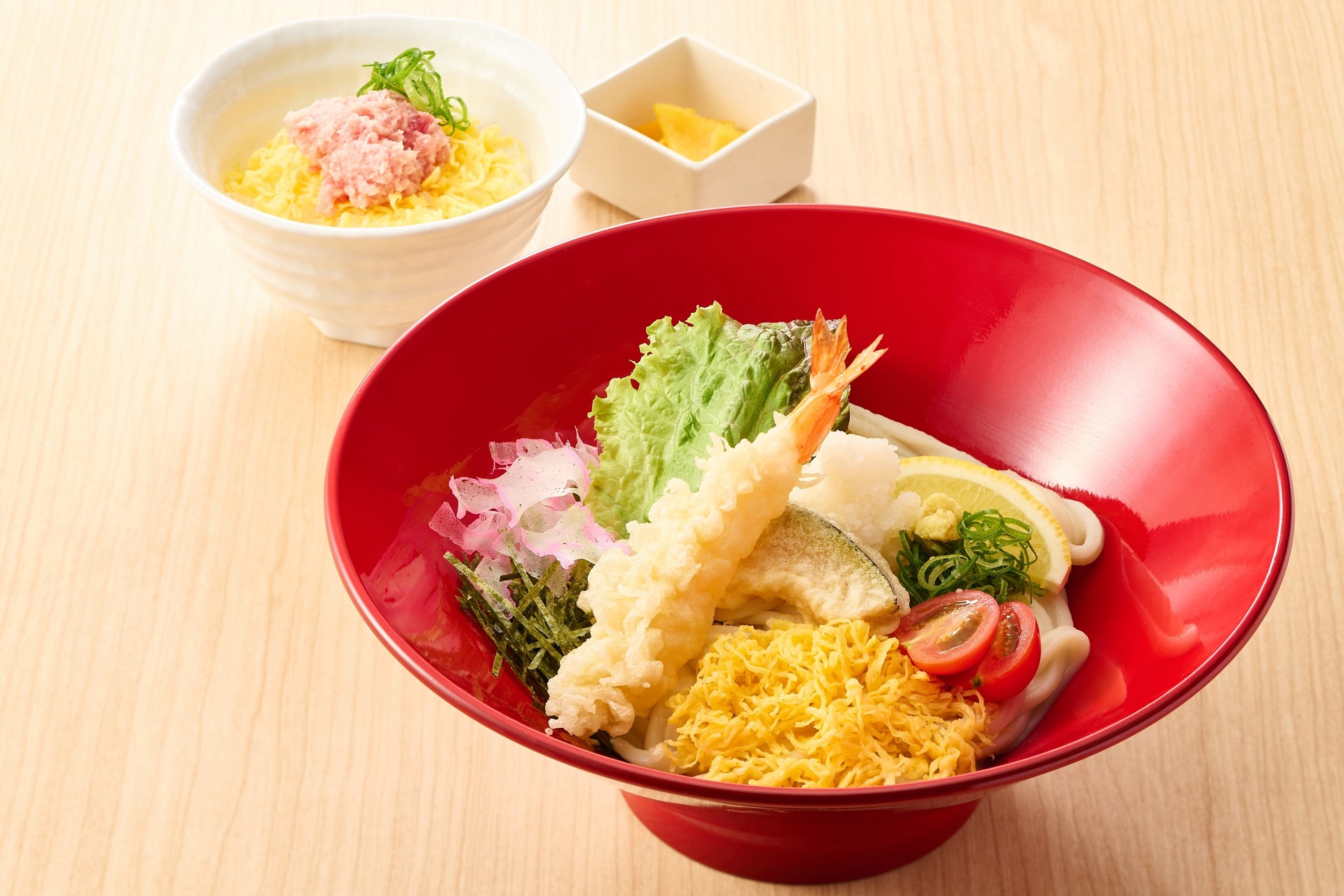 選べるうどんは「温うどん」「ざるうどん」「冷うどん」「釜揚げうどん」「ミニきつねうどん」からお選びいただけます。