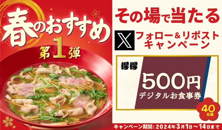 得得 春のおすすめうどん販売開始記念「得得公式Xフォロー&リポストキャンペーン」を開催