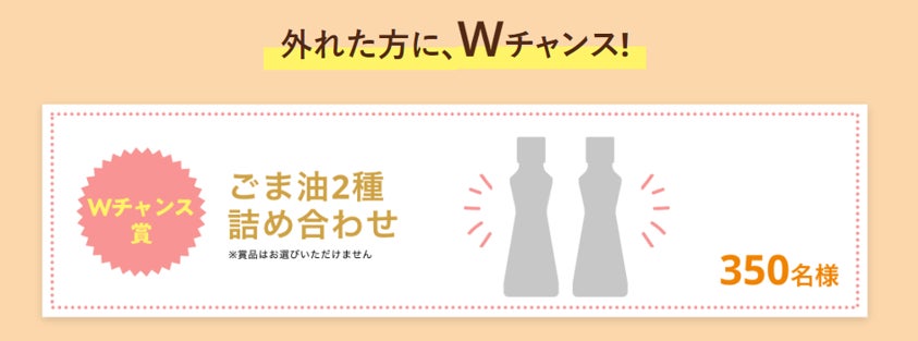 Wチャンス賞としてかどやのごま油2種詰め合わせが当たるチャンスも。
