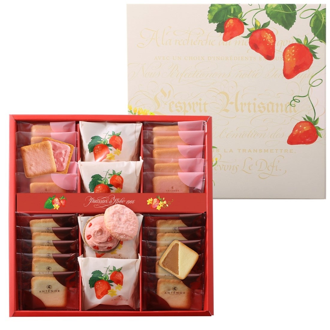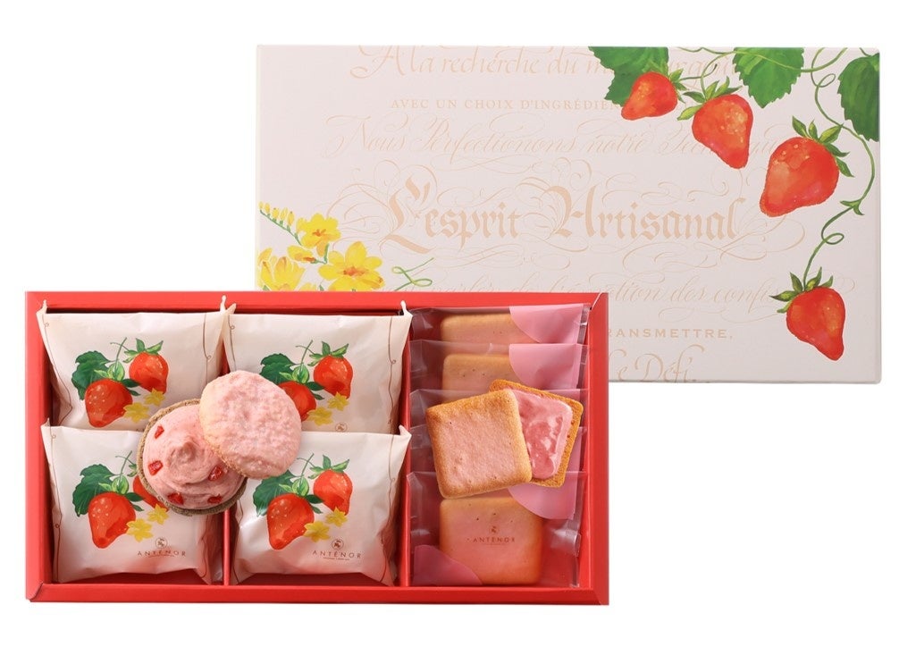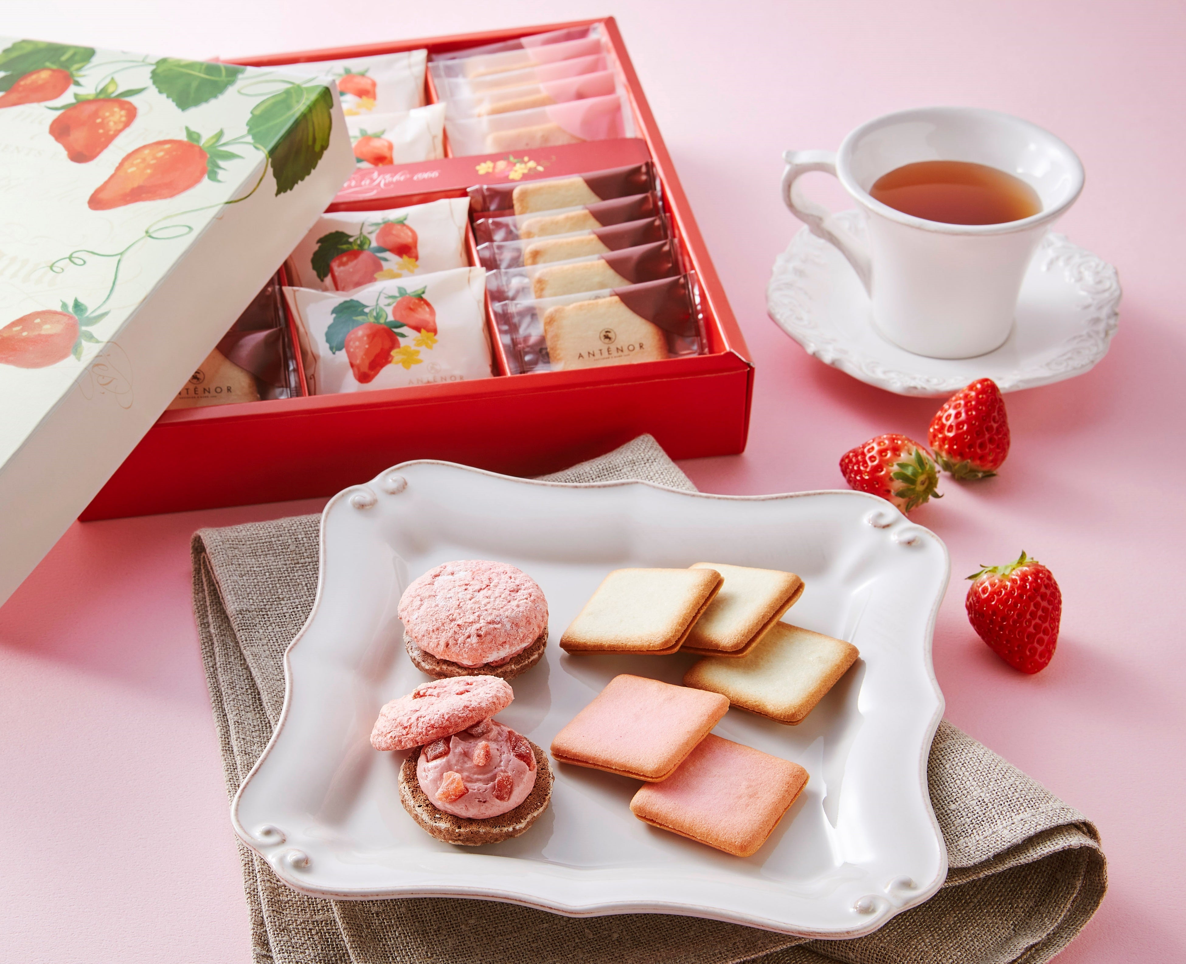 ほんのり甘酸っぱい苺チョコクリームを、ふうわり食感の【苺】と【ショコラ】のダックワーズ生地でサンドした、『苺のクリームサンド』。苺の香り漂うクッキー生地で、口どけなめらかな苺チョコレートをサンドした『苺のラング・ド・シャ・ショコラ』。春の幸せ気分を高めてくれる、甘酸っぱい苺の香りと甘みをいかした焼き菓子を心躍るパッケージに詰め合わせました。 掲載商品以外にもご用途に合わせて様々な入り数のギフトをご用意しておりますので、ぜひご活用ください。