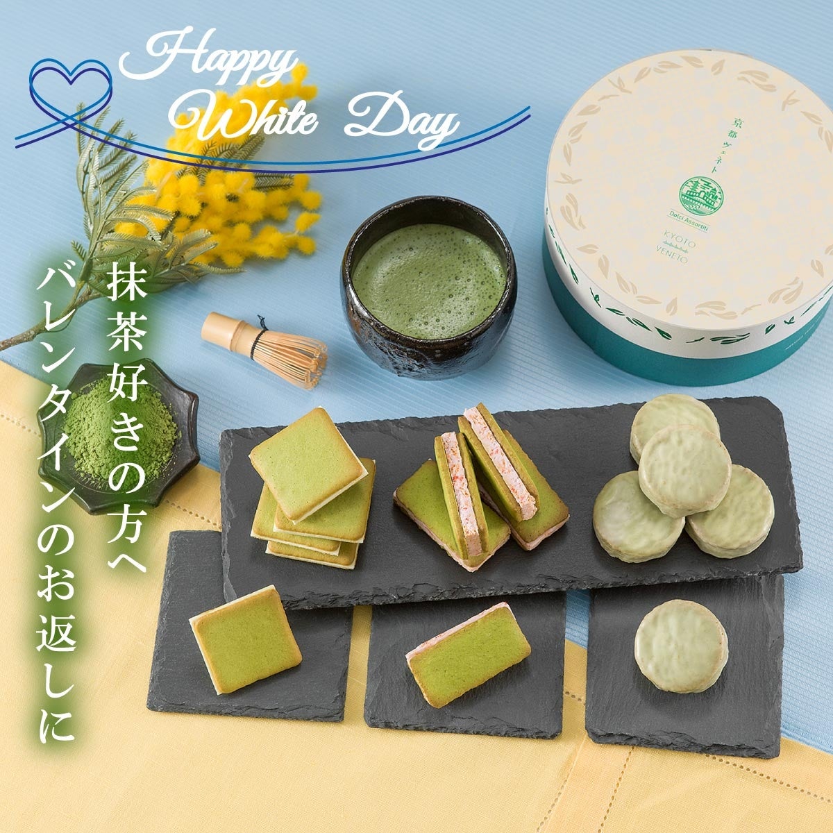 京都ヴェネトの人気焼き菓子3種を詰め合わせました。抹茶スイーツを思う存分楽しめるアソートBOXです。