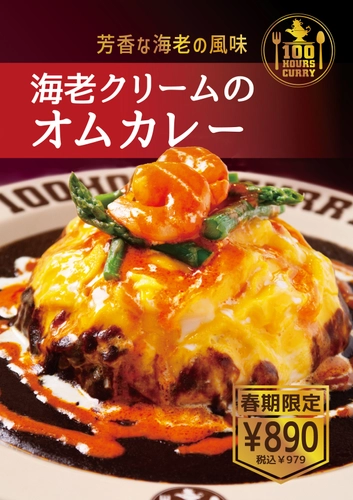 全国約50店舗展開しているカレー専門店「100時間カレー」を運営する株式会社アークス(本社:東京都豊島区、代表取締役:米田周平)は2024年3月1日から期間限定メニューとして「海老クリームのオムカレー」の販売を開始することをお知らせします。