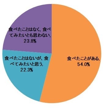 「食べたことがある(54.0%)」が半数を超え、二人に一人は