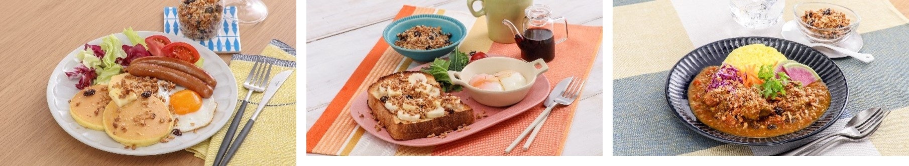ココナッツ、レーズンの甘い香りとフライドオニオンのカリカリ食感が楽しいトッピング用調味料です。フライドオニオンとココナッツの新しい組み合わせで、スイーツはもちろん、カレーなどの普段の料理にもよく合い、マンネリ化した日々の料理に新しい可能性が生まれます。