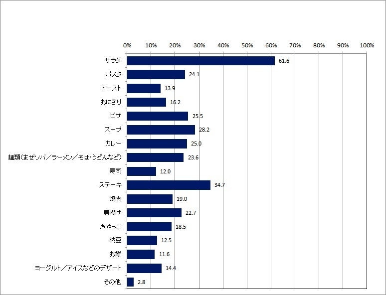 「サラダ(61.6%)」が6割を超える結果となり、2位「ステーキ
