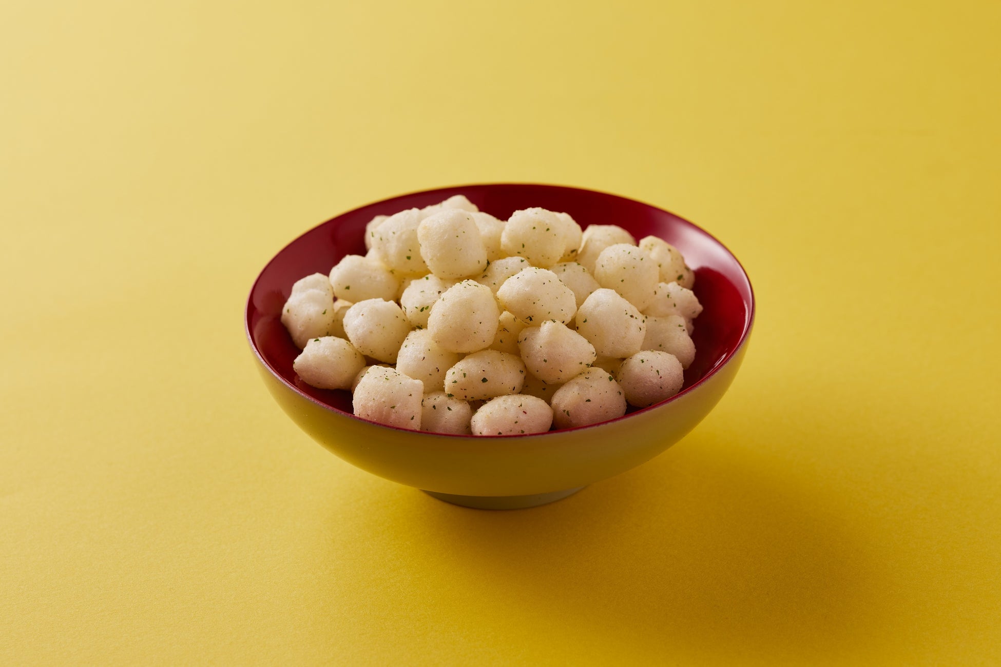 国産米を丁寧に焼きあげた、さくさくふわふわの小粒あられをじゃがバター風味に仕立てました。まぶしたパセリと黒胡椒が味のアクセントに。