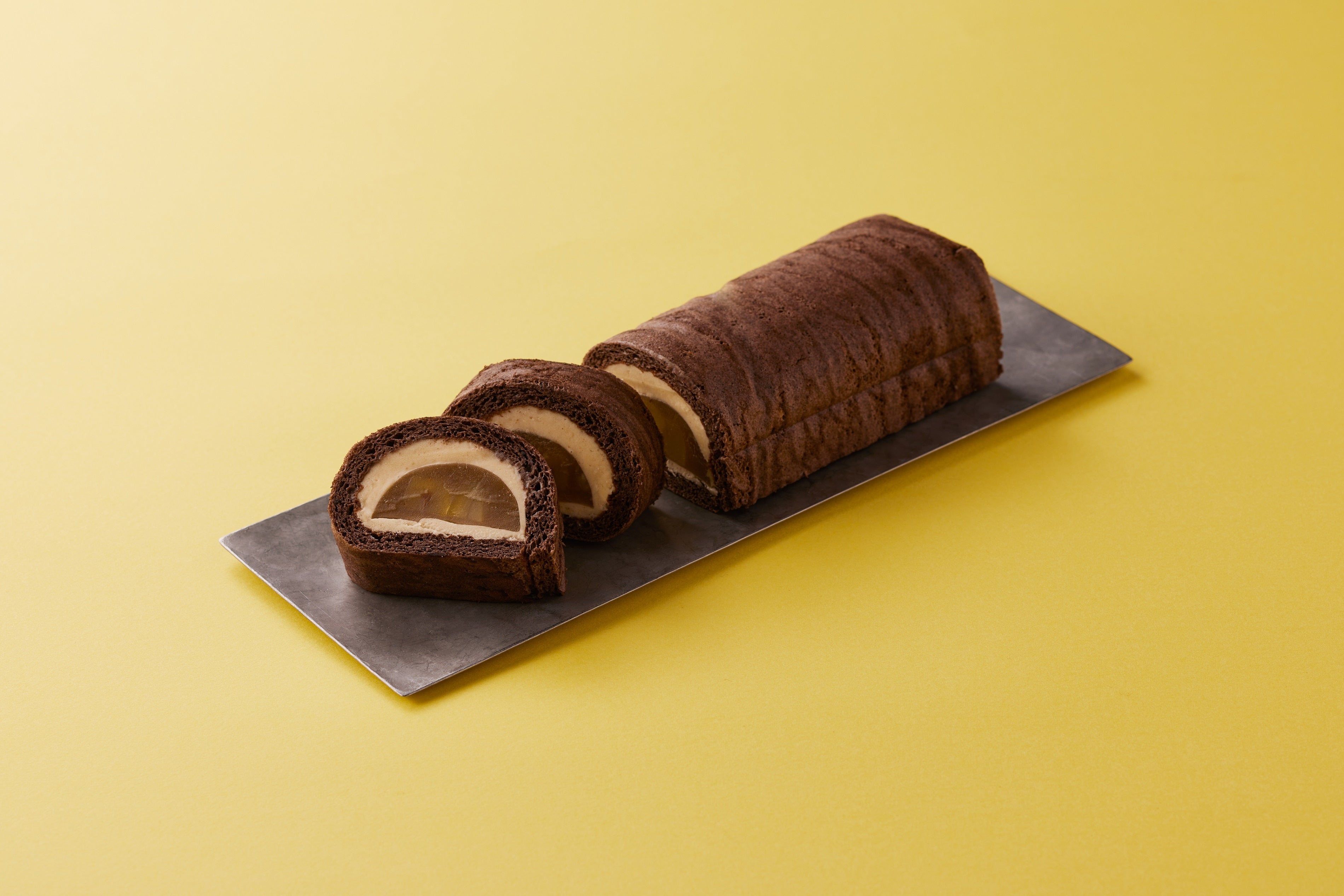 特別に調整した栗羊羹をバタークリームとロールケーキで包みました。羊羹の甘みとバタークリームのなめらかさをお楽しみください。