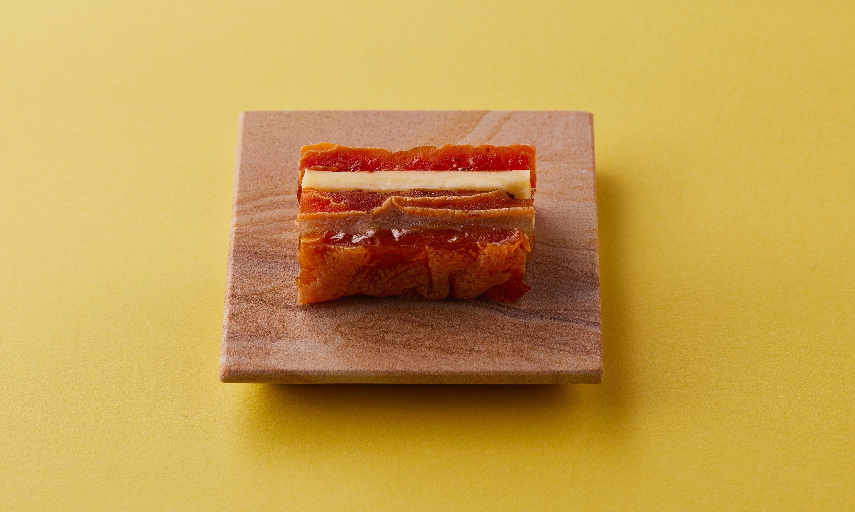 菓子の原点となった「果実」を生かした果実菓子で名をはせる<宗家 源 吉兆庵>。今回は、干し柿、バター、栗羊羹を重ねた「干し柿重ね」を限定で販売します。