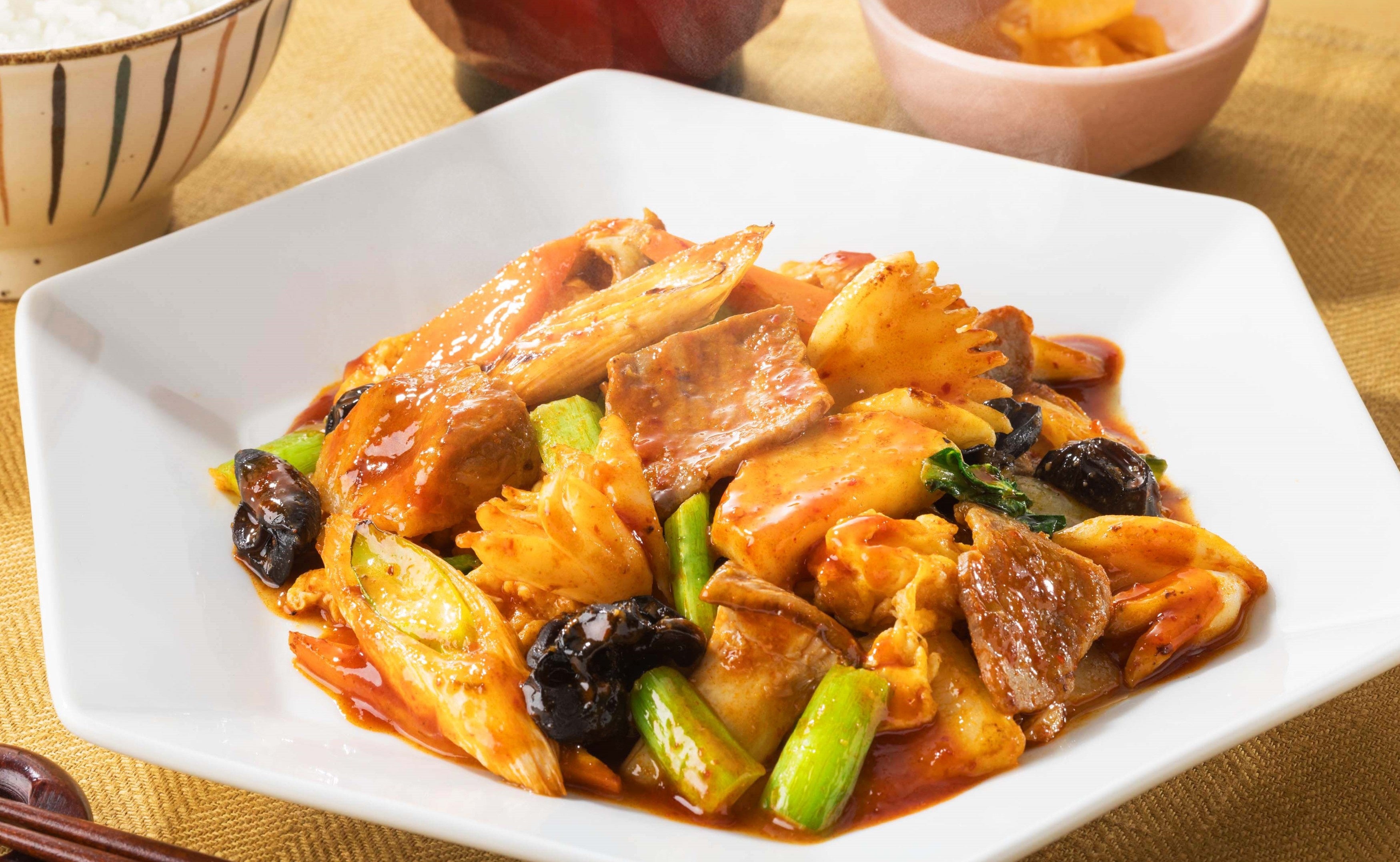 豚肉とイカとたっぷり野菜のピリ辛ポックム