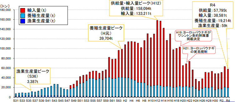 (※2:水産庁「ウナギをめぐる状況と対策について(2023年12月)」より)