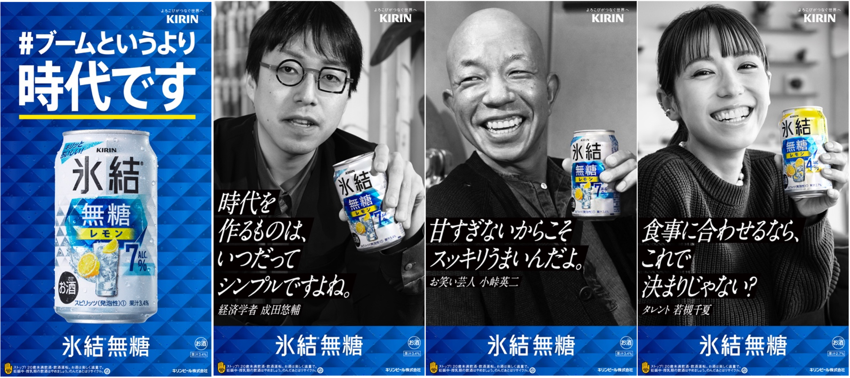 昨年12月には、まだ「氷結®️無糖」の魅力をご存じない方にぜひ知っていただきたいという思いから、「#ブームというより時代です」のテーマのもと、「氷結®️無糖」をこよなく愛する著名人を起用し、その魅力や飲んでいる理由をそれぞれ本音で語ってもらう広告グラフィック・WEBムービーを展開しました。そんな「氷結®️無糖」シリーズから、初の期間限定商品である「キリン 氷結®無糖 ウメ ALC.7%(期間限定)」を3月5日(火)に発売するこのタイミングで、「氷結®️無糖」の新しい魅力をさらに多くのお客様に知っていただきたいという思いから、新シリーズを展開します。新シリーズでは、前作に引き続きお笑い芸人・小峠英二さん、タレント・若槻千夏さんと共に、新たに経済学者の成田悠輔さんを起用し、チューハイの新たな時代を牽引する「氷結®無糖」の魅力を訴求していきます。