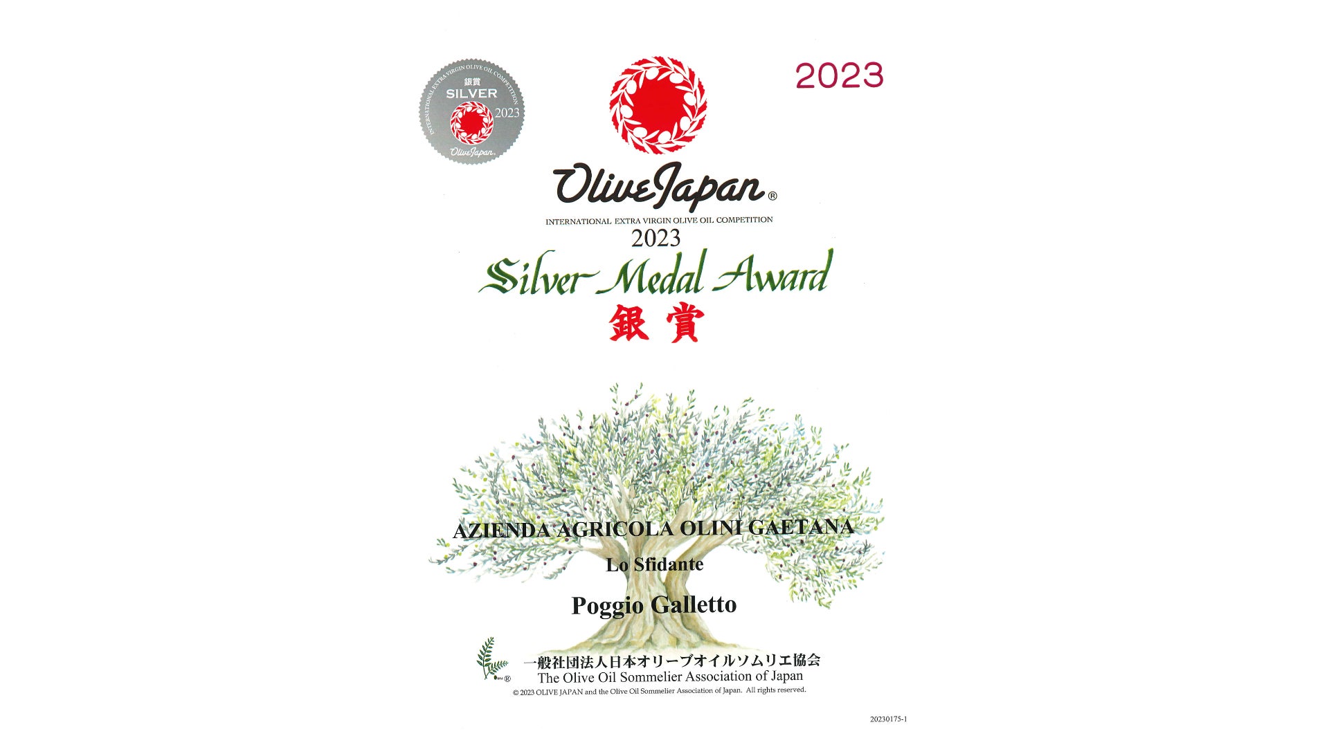 OLIVE JAPAN®は、日本オリーブオイルソムリエ協会が主催する、アジア最大のオリーブオイルコンテストです。今年も世界24ヵ国から702本が出品され、珠玉のオリーブオイルがひしめく中、「ポッジョ・ガレット」は初挑戦で堂々の銀賞を受賞しました。