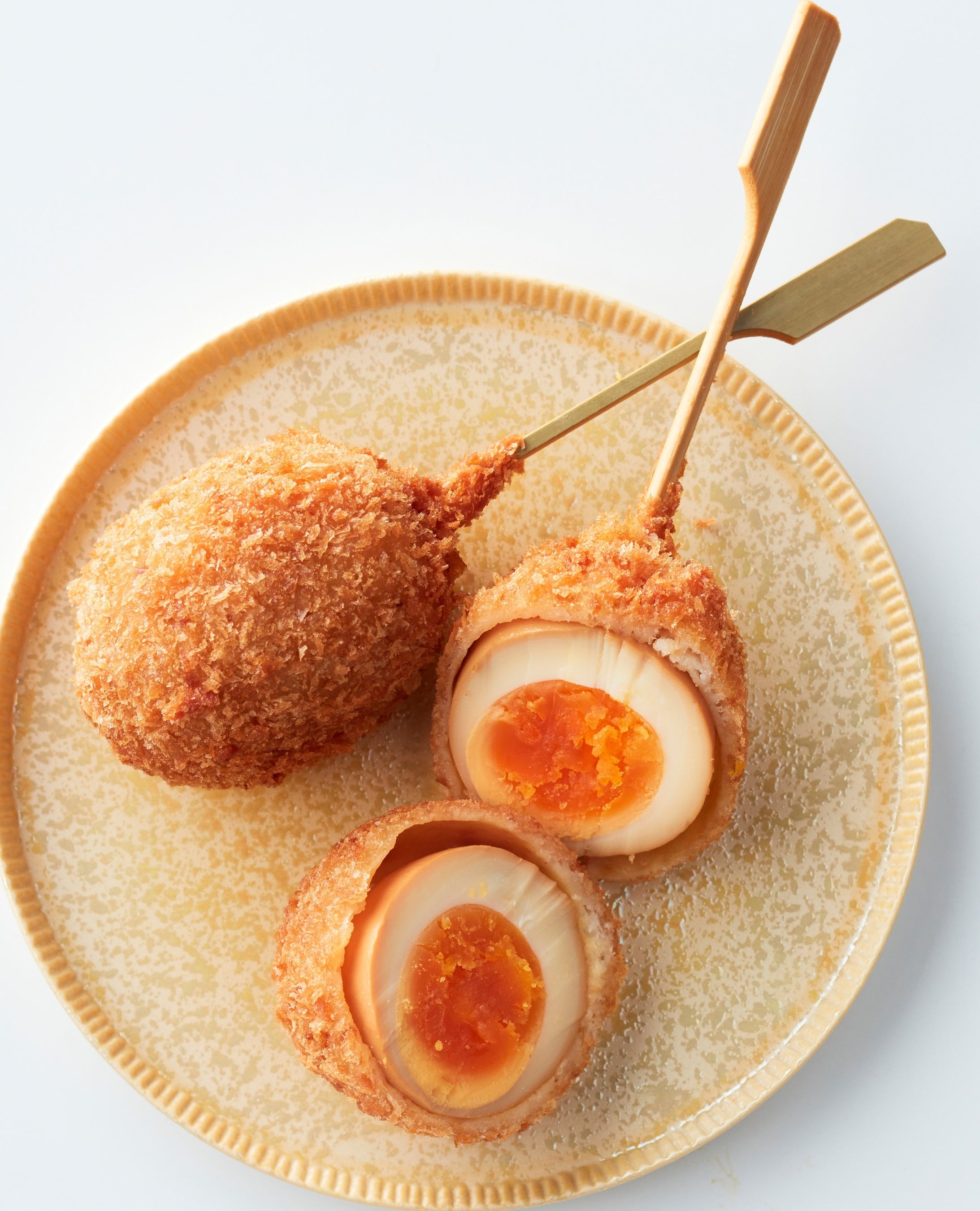 サクサクの香ばしい衣の中に、しっかり味が染みた煮たまごがまるごと入っています。