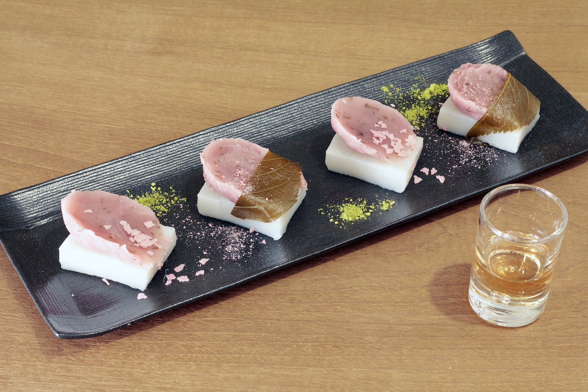 桜餡と桜葉で桜が咲き誇る日本の春を和菓子で表現しました。