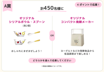 オリジナルシリアルボウル・スプーン各2個 or オリジナルコンパクト発酵メーカー(計450名様)