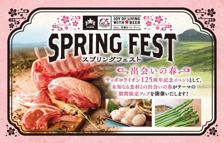 サッポロライオンの創業125周年記念イベントとして、未知なる食材との出会いの春をテーマにした料理フェアを開催します。肉・野菜・魚介の異なるジャンルの中から食材をピックアップ。銀座ライオンやYEBISU BAR(ヱビスバー)など全国展開するブランドをはじめ、その他サッポロライオンチェーン各店が考案したオリジナル料理が楽しめる内容となっています。また、今回使用する食材や創業125周年に関連する「club LIONアプリ特別クイズ」や、当フェア料理をご注文するともらえるオリジナル抽選くじなどの企画もご用意しました。