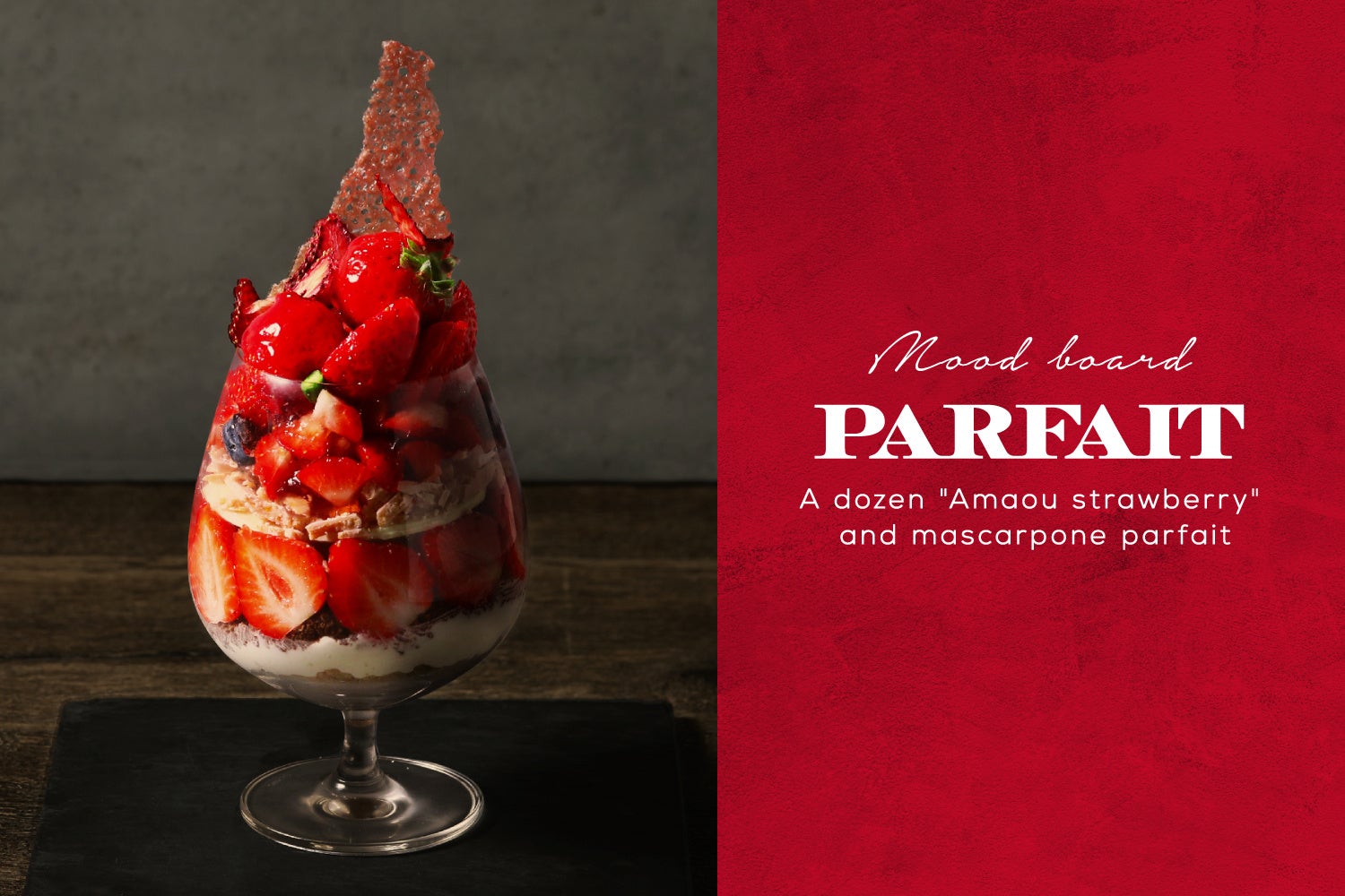 ■1ダースの”あまおう”とマスカルポーネのパフェ 2800円(税込)