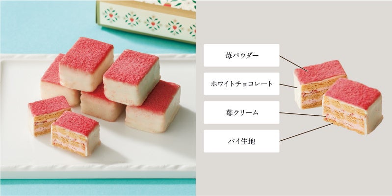 苺の華やかな甘みのクリームを香ばしくサクッとしたミルフィユ生地でサンドしました。