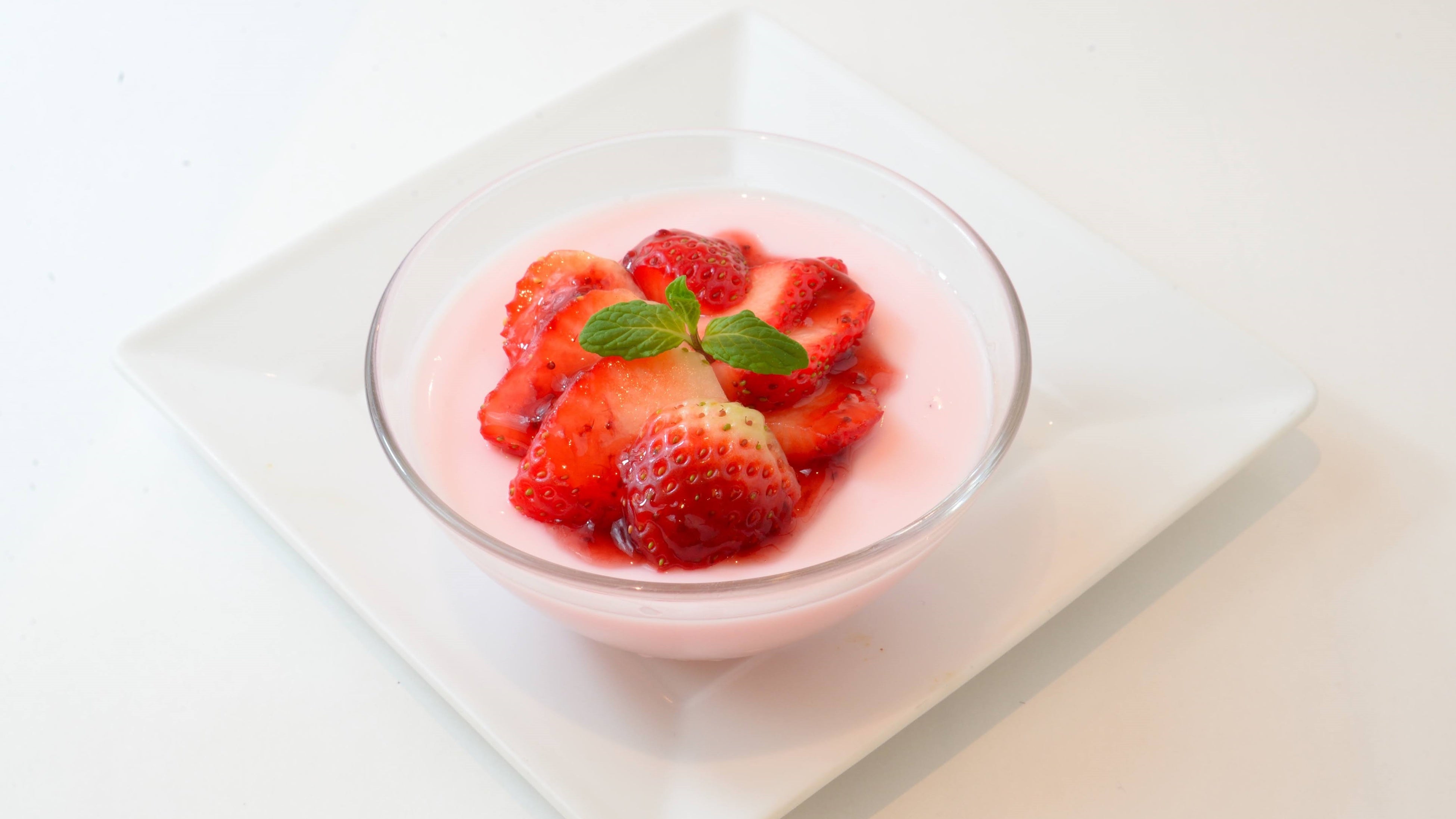 生クリームといちご、なめらか杏仁豆腐が今の季節にぴったりのパフェをどうぞ♪