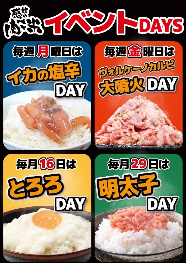 毎週月曜日と毎月16・29日開催中のイベントDAYは