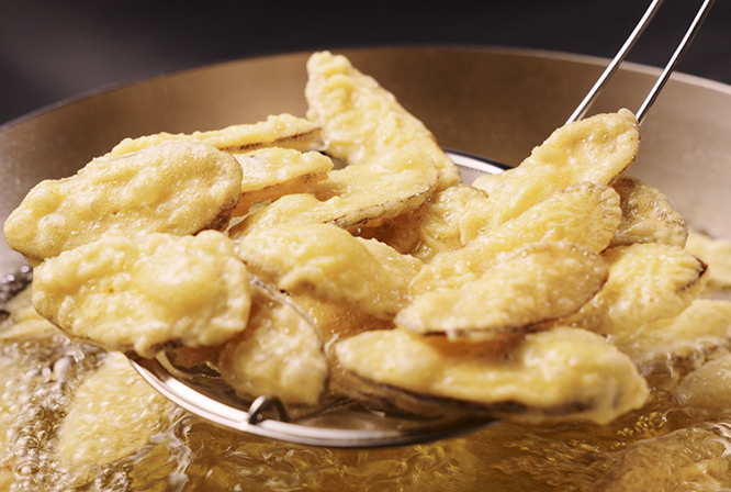 ポイント② 店で丁寧に揚げる山盛りのごぼう天