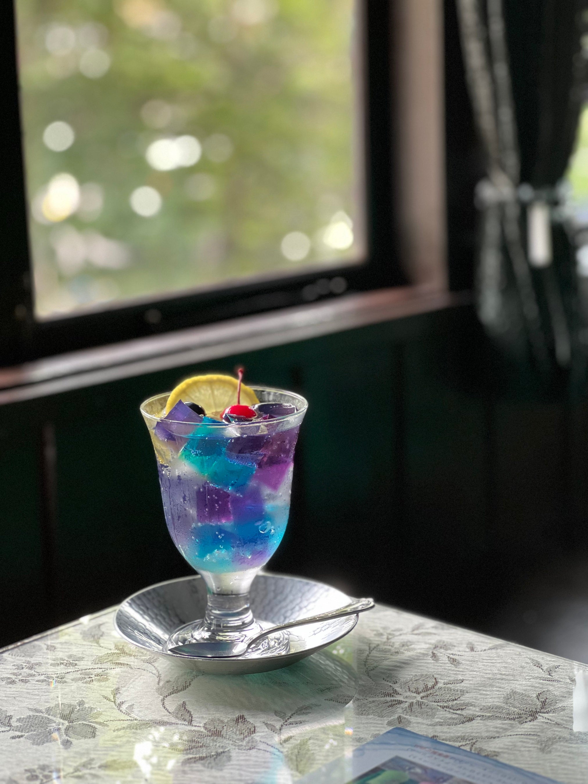 昭和のレトロな雰囲気が漂う空間と見た目も楽しいゼリーメニューで、女性に人気の京都にある<喫茶 ソワレ>がイートインへ出店します。まるで宝石のようにきらきらと魅惑的でカラフルなゼリーポンチは、店名の「ソワレ(夜会)」をイメージした、<喫茶 ソワレ>本店でも年に数回限りの特別メニュー。今回は、爽やかな甘さが特徴の柑橘「はるか」を使用した限定バージョンとなります。