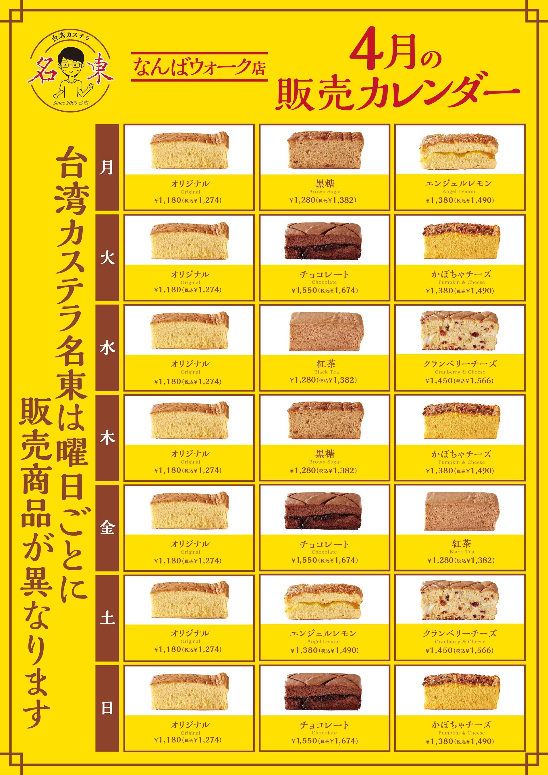 4月 2 日(火)大阪府大阪市中央区に「台湾カステラ なんばウォーク店」をオープンいたします。
