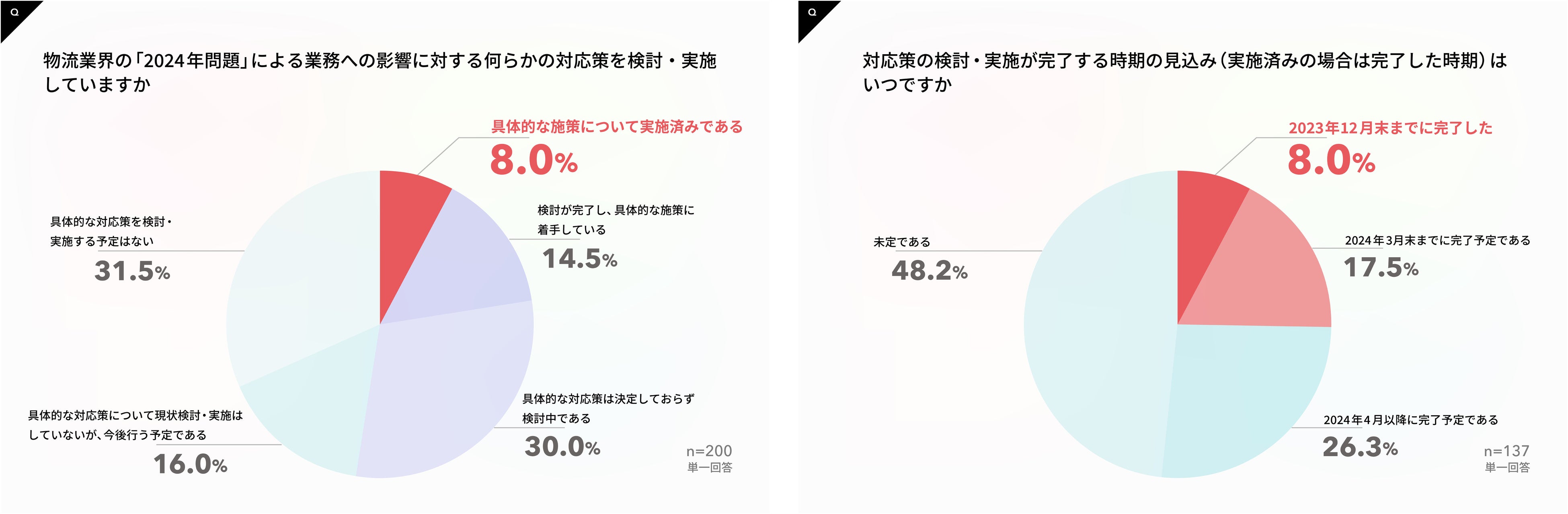 また、対応策の検討・実施が2024年3月末までに完了する予定(完了含む)も25.5%で、法改正適用後の「2024年4月以降に完了予定である」、「未定である」との回答が過半数を占めた。