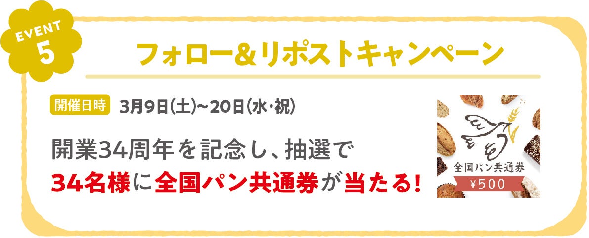 開業34周年を記念し、抽選で34名様に全国パン共通券が当たる