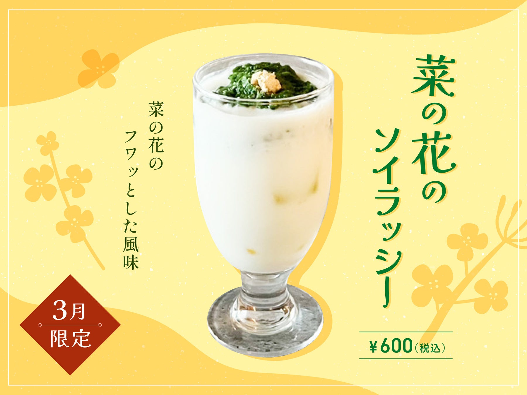 見た目は菜の花をモチーフにし、豆乳が菜の花のほろ苦さを包み込む、優しい味わいです。
