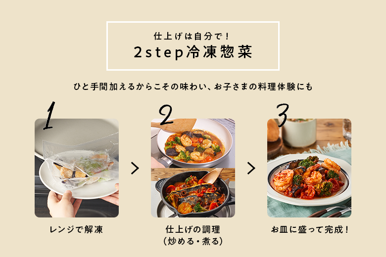 Oisixでは、コロナ禍を経て家庭で食事を作る機会が増えたことで「より手軽・時短」を求める傾向が高まったことを受け、2022年2月より、冷凍食品の「パッとOisix」シリーズを展開しています。全商品が10分以内で完成するのも特徴で、電子レンジ調理のみで食べられる「1step冷凍総菜」や、炒めたり煮たりする仕上げのひと手間で手料理感を手軽に味わえる「2step冷凍総菜」を揃えています。また、全商品に5種類以上の野菜が入っており、一から作ると時間がかかったり自分では再現できない本格的な味付けが特徴であることから、忙しいご家庭はもちろんのこと、一人暮らしをするお子さまへの仕送りにも活用できます。