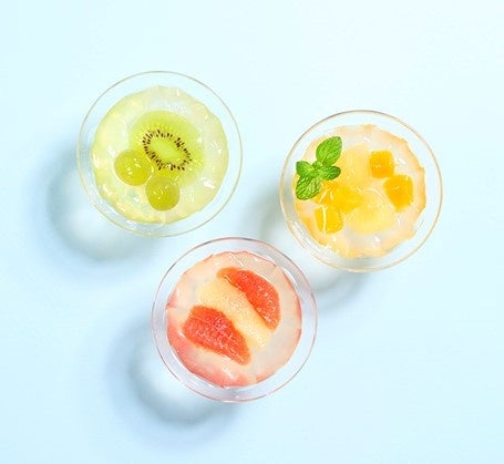 今回、2024年夏の新商品として、爽やかで贅沢なスイーツ「フルフルフルーツゼリー」が登場。商品名の“フルフル”はフルーツがたっぷり入っていることから“Full”と“フルーツ”を掛けて名付けました。1つのセットで6種類のフルーツが楽しめるようになっており、グレープフルーツ(ホワイト&レッド)、キウイ×ぶどう、マンゴー×パインの3種のゼリーを用意しました。