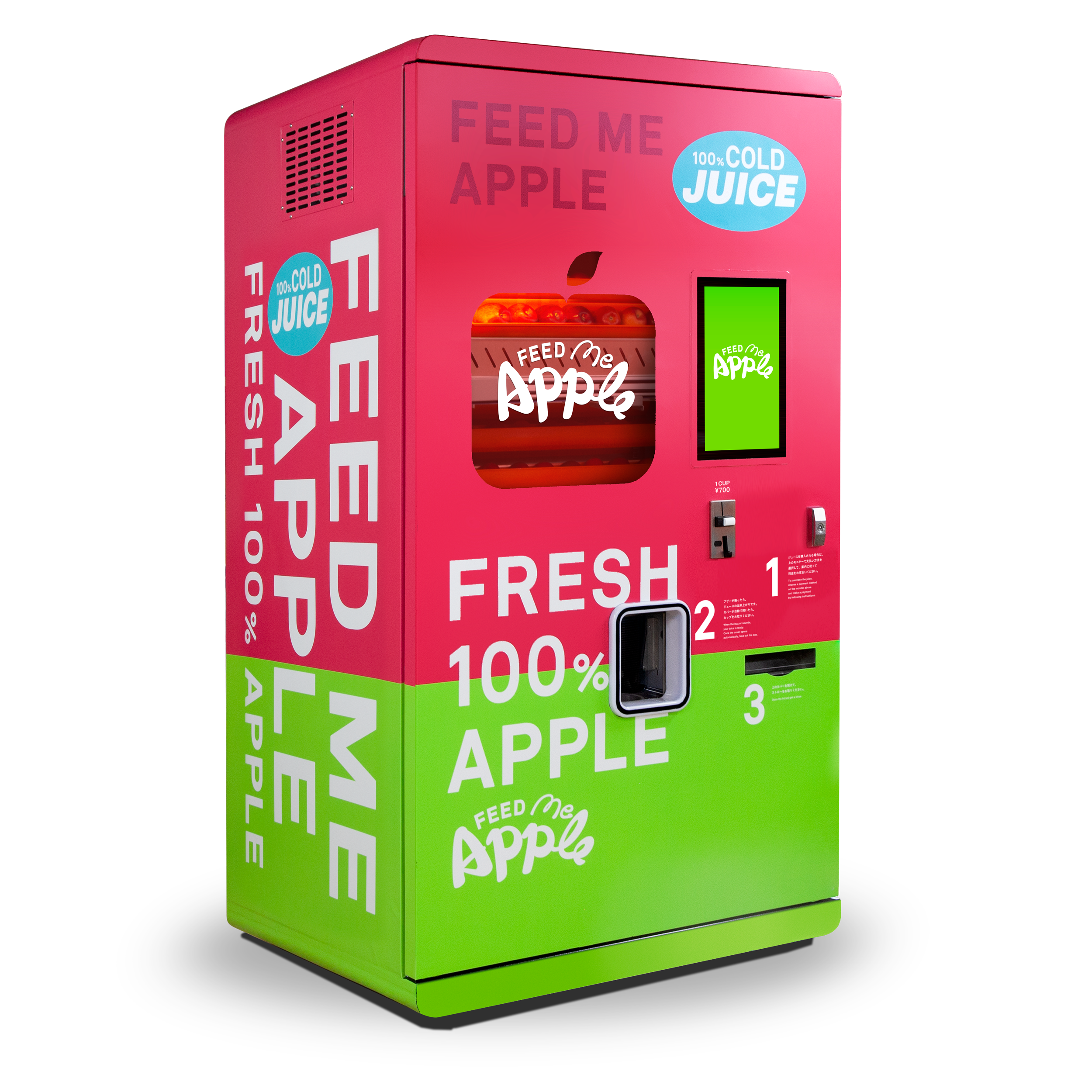 2021年7月にME Group Japanが日本で初めて導入して以来、数多くのメディアで取り上げられて、大きな話題となっている生搾りオレンジジュース自動販売機「Feed ME Orange」に次ぐ、同社の生搾りジュース自動販売機の第2弾。注文してから約60秒で、果汁100%の無添加でフレッシュなアップルジュースをお届けします。