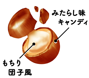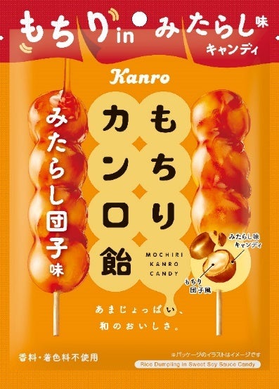 カンロ飴のあまじょっぱい味わいを活かしたみたらし味の飴の中に、団子をイメージしたもちもち食感の「もちり団子風」のセンターをたっぷりと入れることで、“外はパリッと、中はもちっ”の新食感をお楽しみいただけます。